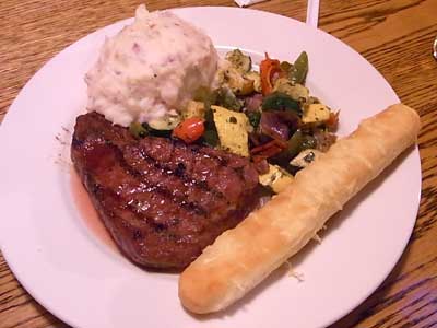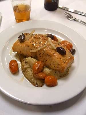 ![]() ホテルでの夕食。大きいが大味であった。 |
