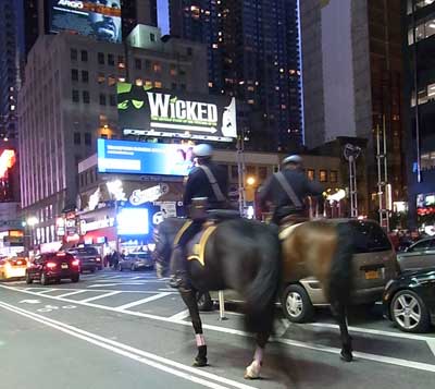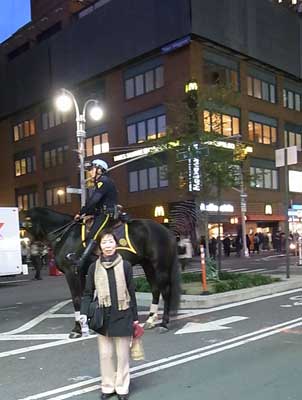 ![]() ブロードウェイ通りを騎馬警官が行く |