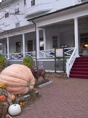 ![]() 小さなホテル玄関前のハローウィンのためのカボチャ |