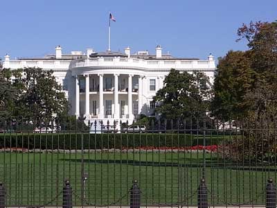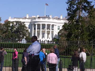 ![]() ホワイトハウス。警備が厳重であった。 ホワイトハウスの屋上にも人影が見える |