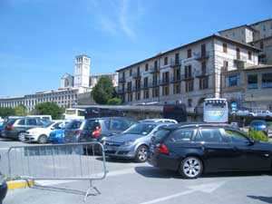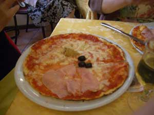 | サンフランチェスコ教会を駐車場から望む | 昼食で食べたピッツア |