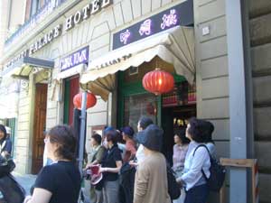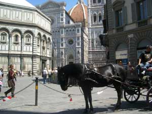 | 昼食をとった中華料理店まえにて | ドウモの裏道で出会った馬車 |