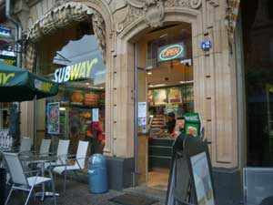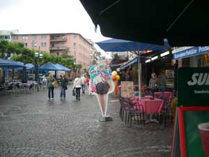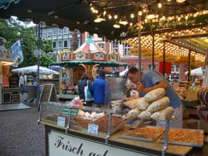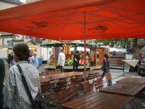 | フランクフルトの市外で見かけた店です。つくば市の中心にも、近々、開店するそうです。 | 屋台がたくさんありました。 |