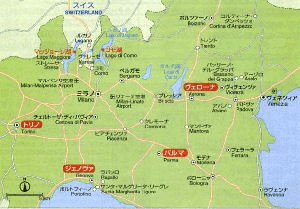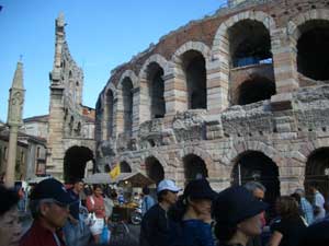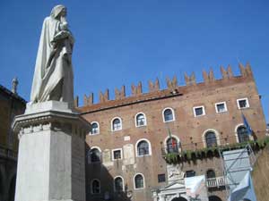 ヴェローナは。ミラノとヴェネツィアのほぼ中間に位置し、世界遺産に指定されています。 ジュリエッタの家やアレーナ(円形闘技場)、シニョーリ広場に、「神曲」を書いたダンテの像などがあります。 |