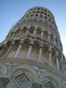 | ピサの斜塔 | ピサの斜塔 塔の上部より、下の方がより傾いている |