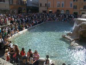 | トレビの泉 | トレビの泉 たくさんの観光客でにぎわう。スリの格好の稼ぎ場だとか。 |