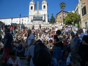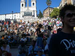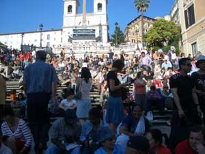 | スペイン階段の観光客 ガイドさんによると、今日はいつもより、少ない方だとか。 |