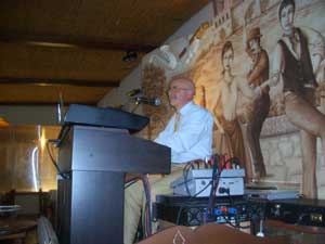 帰り道の途中で寄ったレストランでの生演奏中の男性歌手。 主に、ポピューラ・ソングを歌っていたが、その中での、ラ・ノビアは圧巻であった。 |