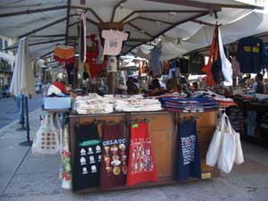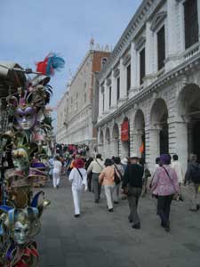 | 水上バスの船着場からサンマルコ広場に 向かって歩く。おみやげ物屋が並んでいる。 |