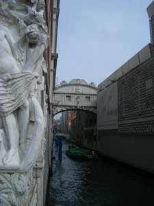 ためいきの橋 ドッカーレ宮殿とと牢獄を繋ぐ橋。この橋を渡ると二度と この世に戻れなかったとか。それでこの名が付いたとか。 |