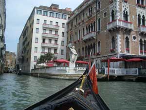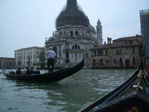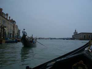 | サンマルコ運河から教会を望む | サンマルコ運河上のゴンドラ |