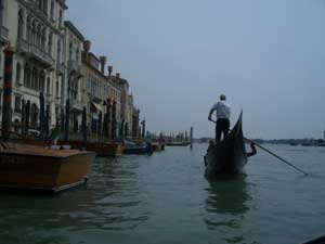 | サンマルコ運河を進むゴンドラ この運河は広々としていて見晴らしがよい |