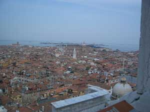 | 運河の船着場に戻る途中の風景 | サンマルコ広場 右に見える鐘楼の上にエレベータで 登って撮ったのが下の写真です。 |