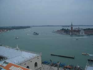 | 鐘楼から見たサンマルコ運河の様子 | 鐘楼から見下ろしたサンマルコ広場 |
