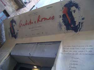 | ジュリエッタの家 入り口にジュリエッタとロメオの看板 |