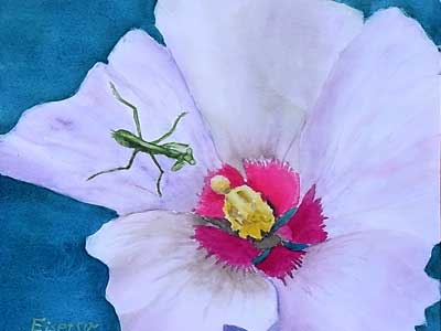 カマキリとムクゲ