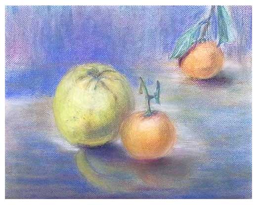ゆずとミカン(F6号) パステル画