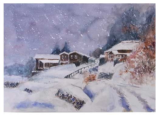 雪降る里(F6号)